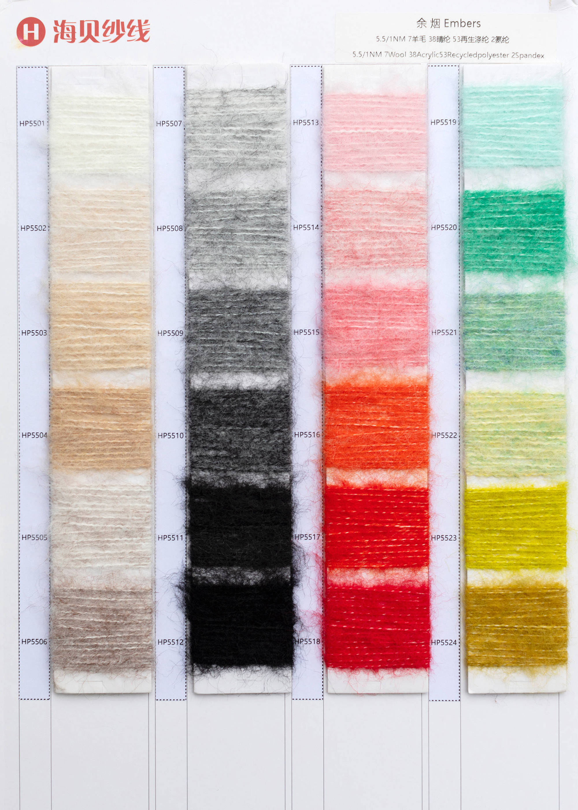 | 5.5/1NM | 7羊毛38晴纶53再生涤纶2氨纶