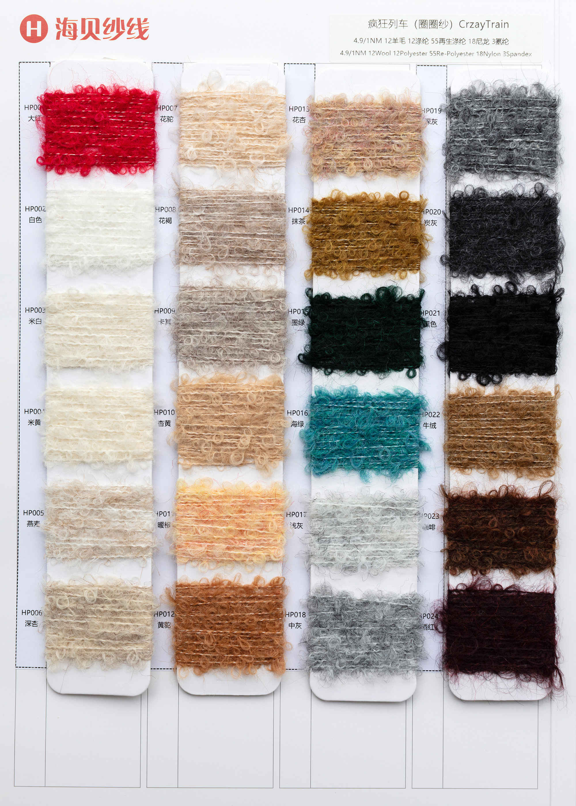 | 4.9/1NM | 12羊毛18尼龙12涤纶55再生涤纶3氨纶