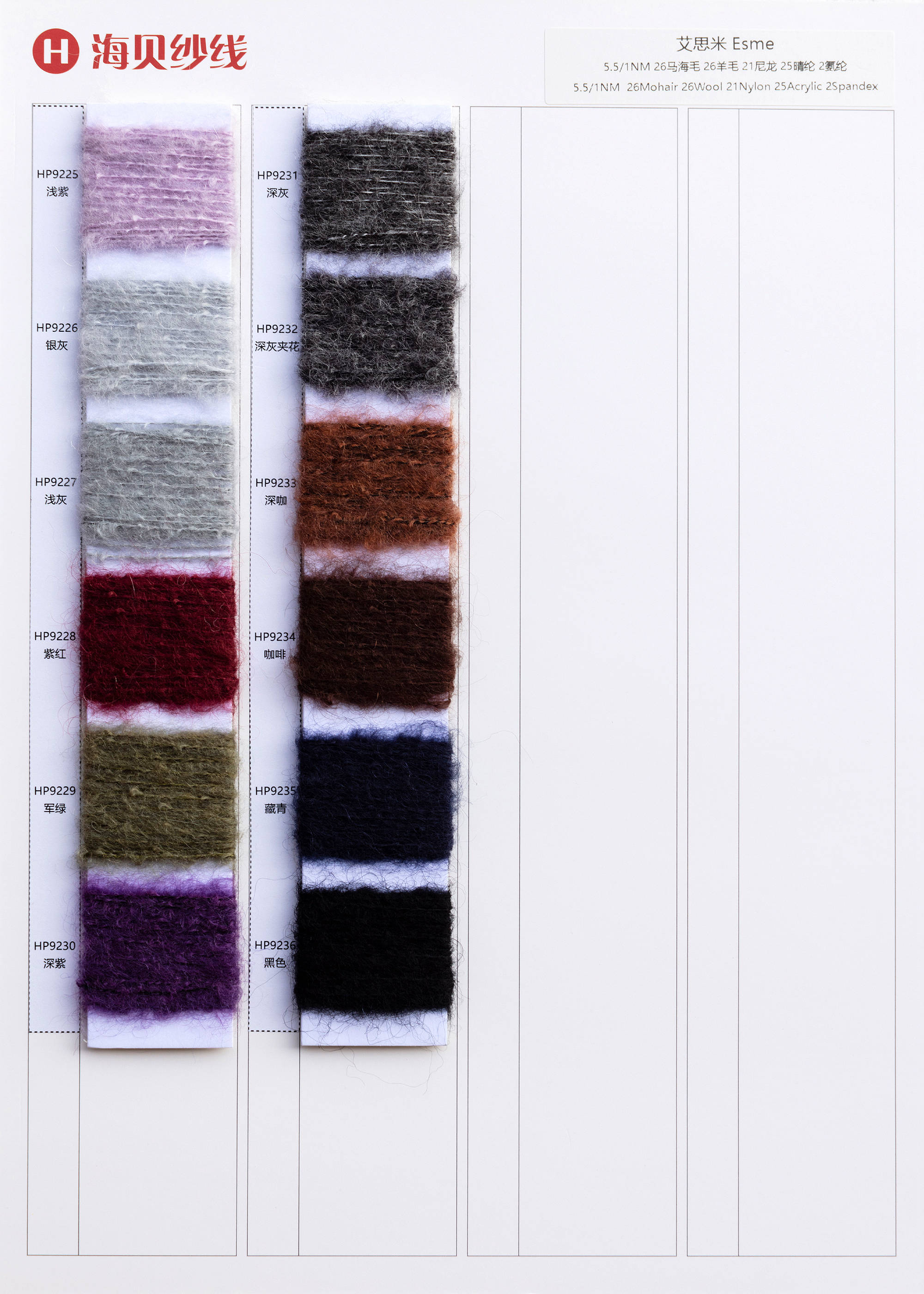 | 5.5/1NM | 26RMSmohair 26RWSwool 21nylon 25acrylic 2sp