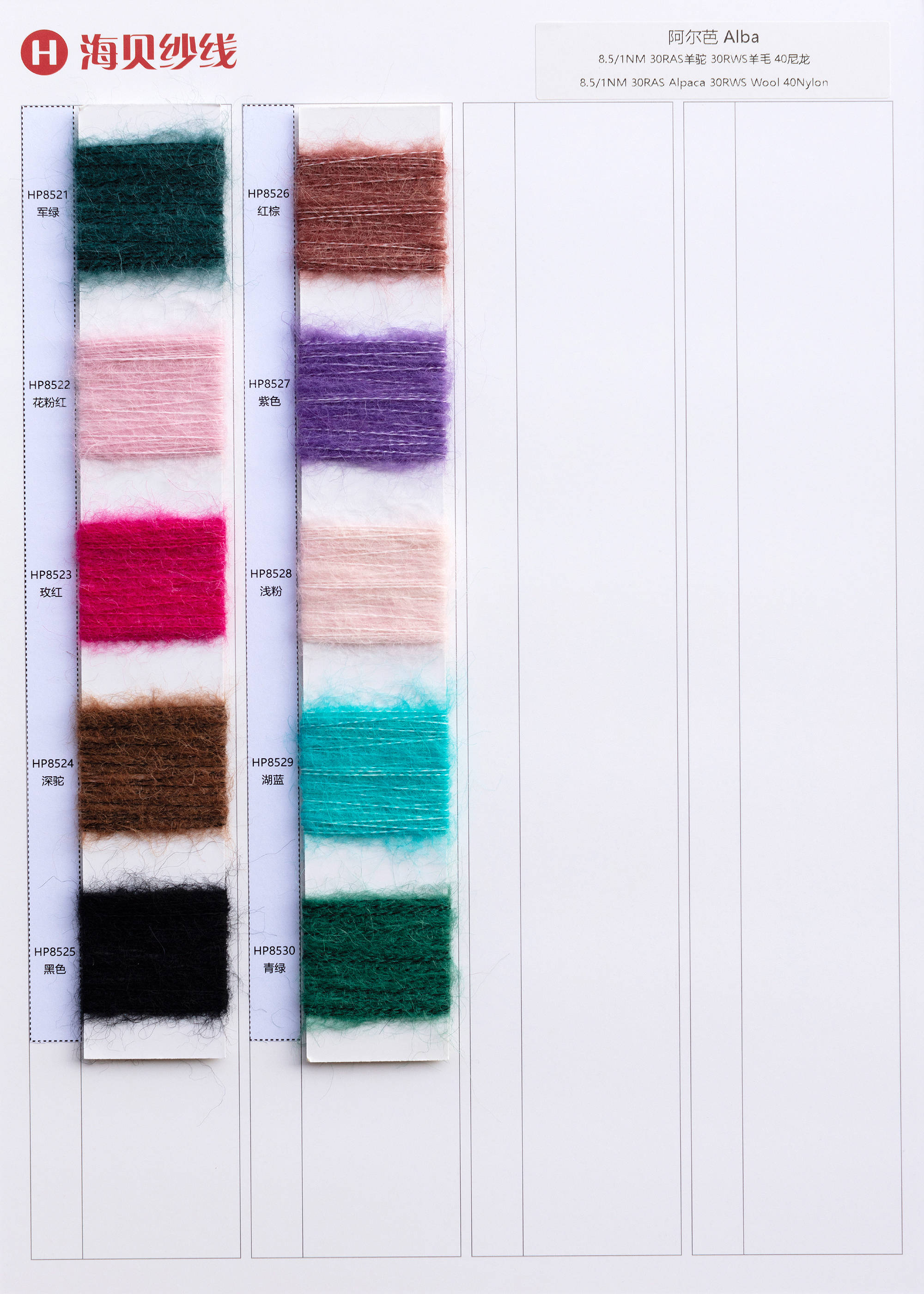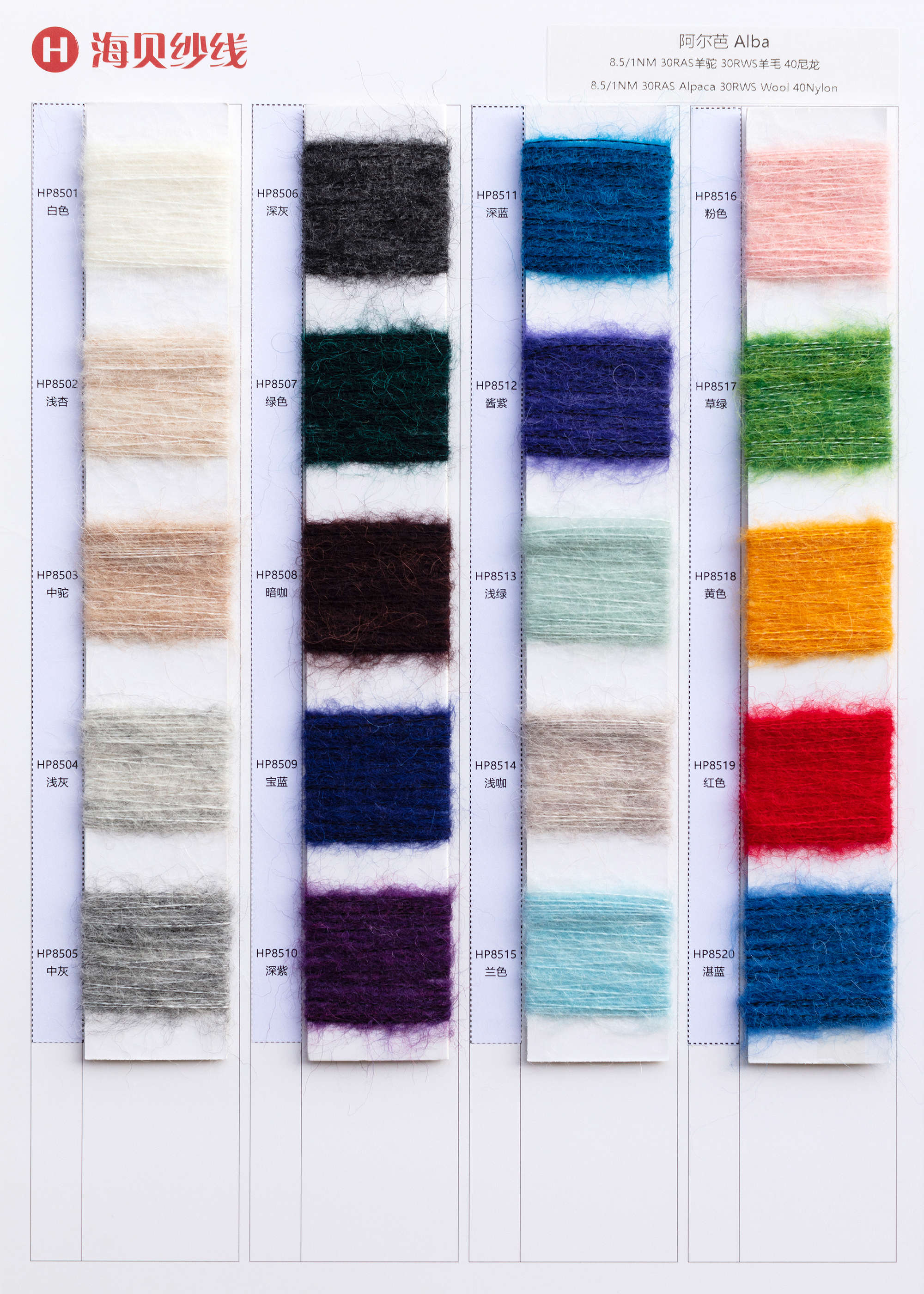 | 8.5/1NM | 30RASalpaca 30RMSmohair 40nylon