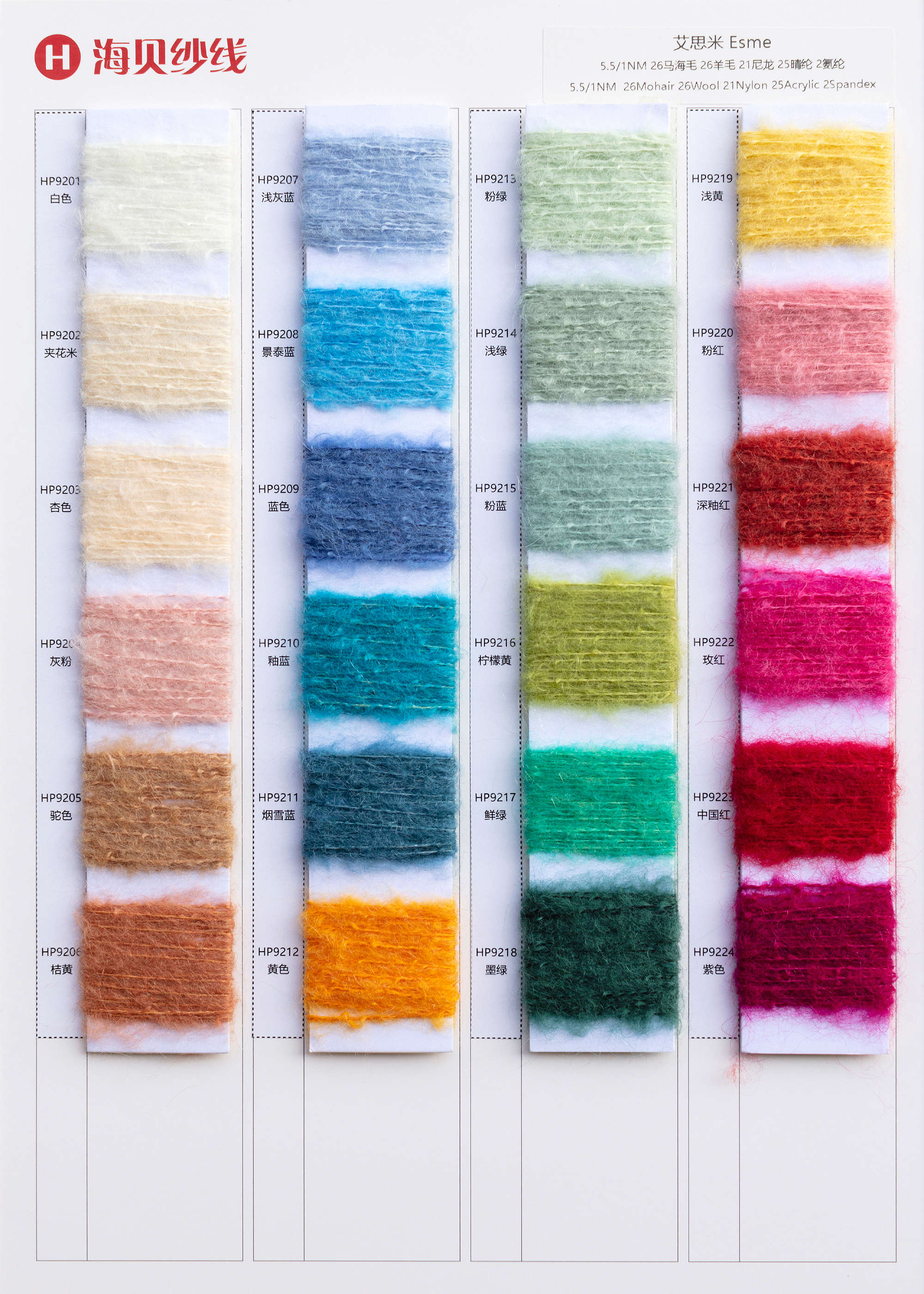 | 5.5/1NM | 26RMSmohair 26RWSwool 21nylon 25acrylic 2sp