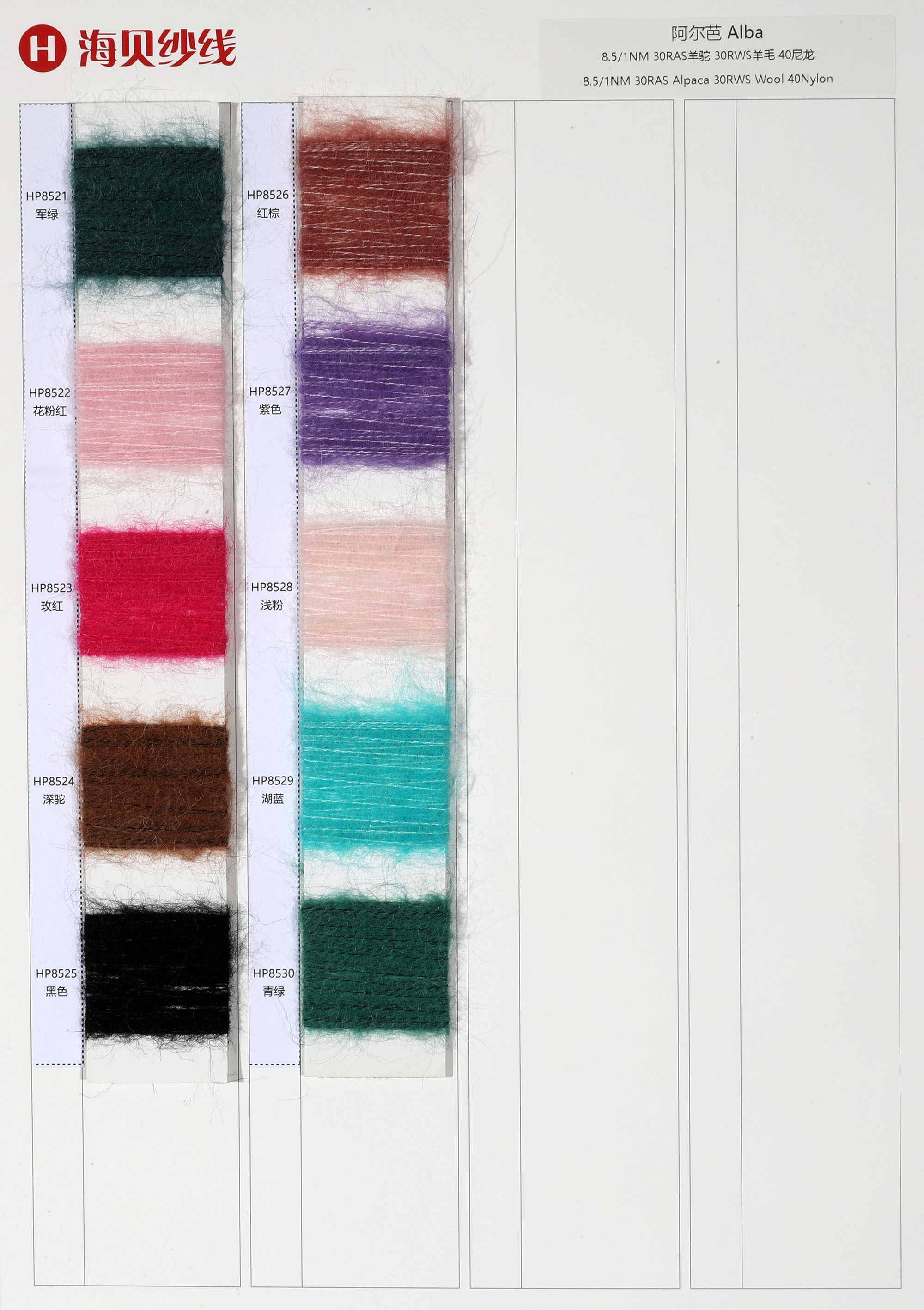 | 8.5/1NM | 30RASalpaca 30RMSmohair 40nylon